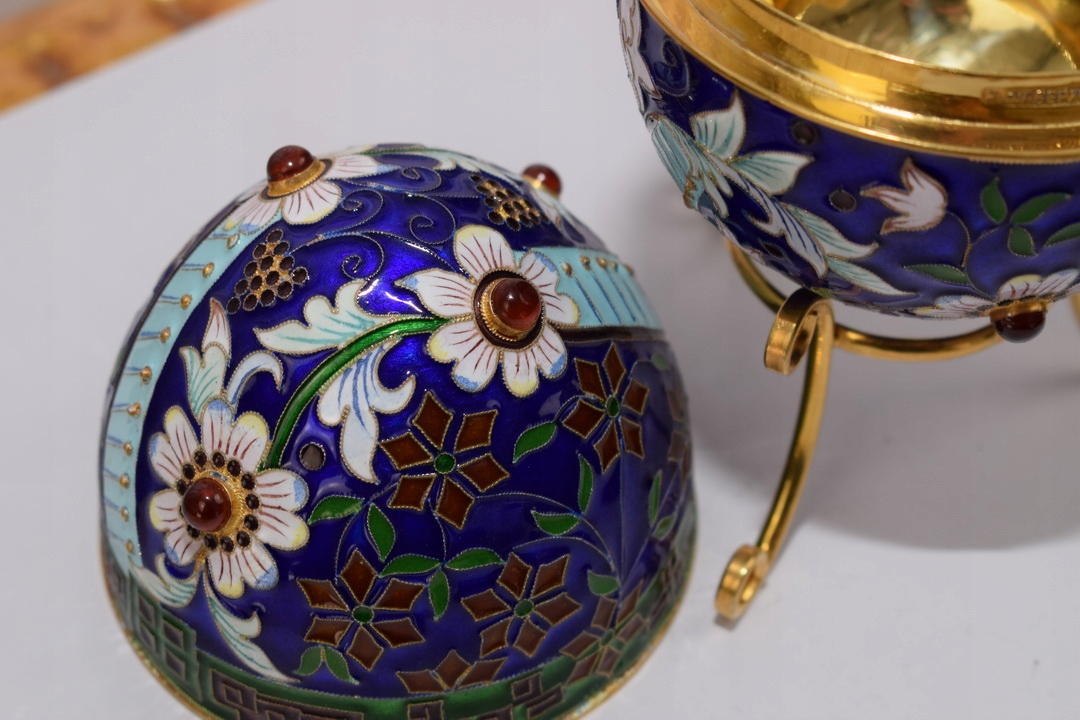 Wielkie Srebrne Złocone Jajo Jajko - Srebro Emalia Carska Rosja pr. 84 220g