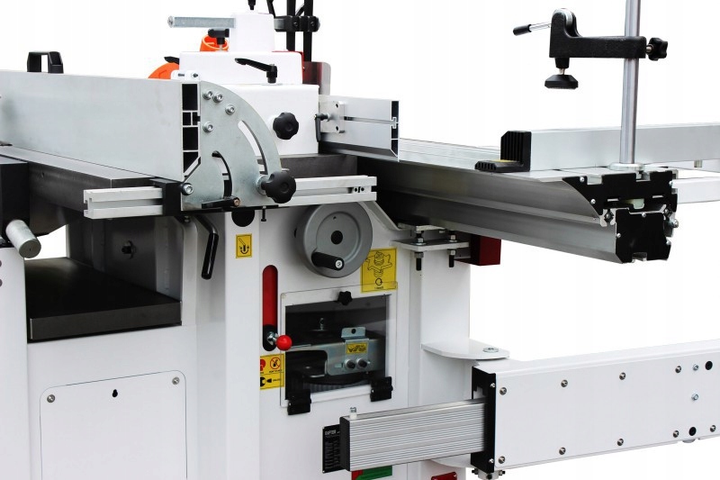 Станок с характеристиками промышленного профессионального станка, размеры которого подходят для небольших мастерских и ателье. Он оснащен настольной пилой и форматным столом, строгальным, рейсмусовым и шпиндельно-фрезерным станком. Чугунная конструкция корпуса, точный упор поперечной резки и отличное качество изготовления позволяют добиться наилучших результатов обработки.
