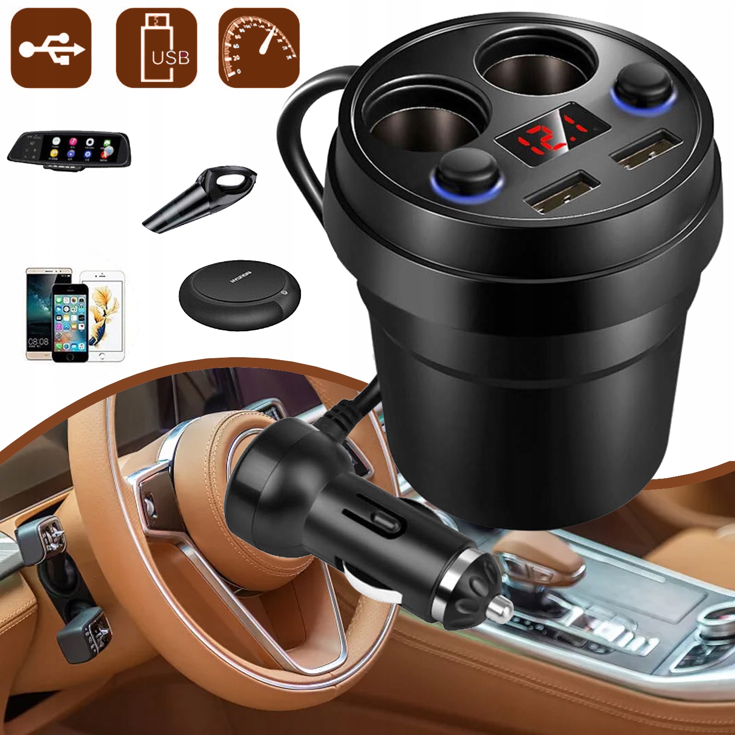 🚗🚗🚗【АВТОМОБИЛЬНОЕ ЗАРЯДНОЕ УСТРОЙСТВО 12В-24В С ШИРОКИМ ДИАПАЗОНОМ НАПРЯЖЕНИЙ】 Многофункциональное автомобильное зарядное устройство с подстаканником, двойным отверстием для прикуривателя, двойным USB, контролем напряжения в реальном времени, Не выбирает модель автомобиля, общее широкое напряжение, подходит для многих моделей, можно использовать 12–24 В. Автомобильное зарядное устройство с двумя USB-портами на 3,1 А, автомобильное зарядное устройство для быстрой зарядки, разветвитель прикуривателя с 2 розетками.