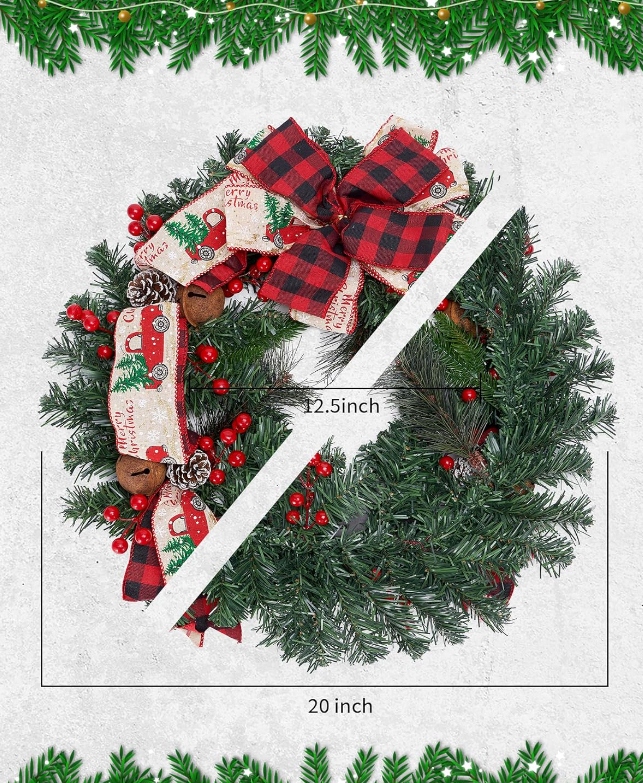 Wieniec świąteczny 50 cm zdobiony motywy czerwone bożonarodzeniowy stroik