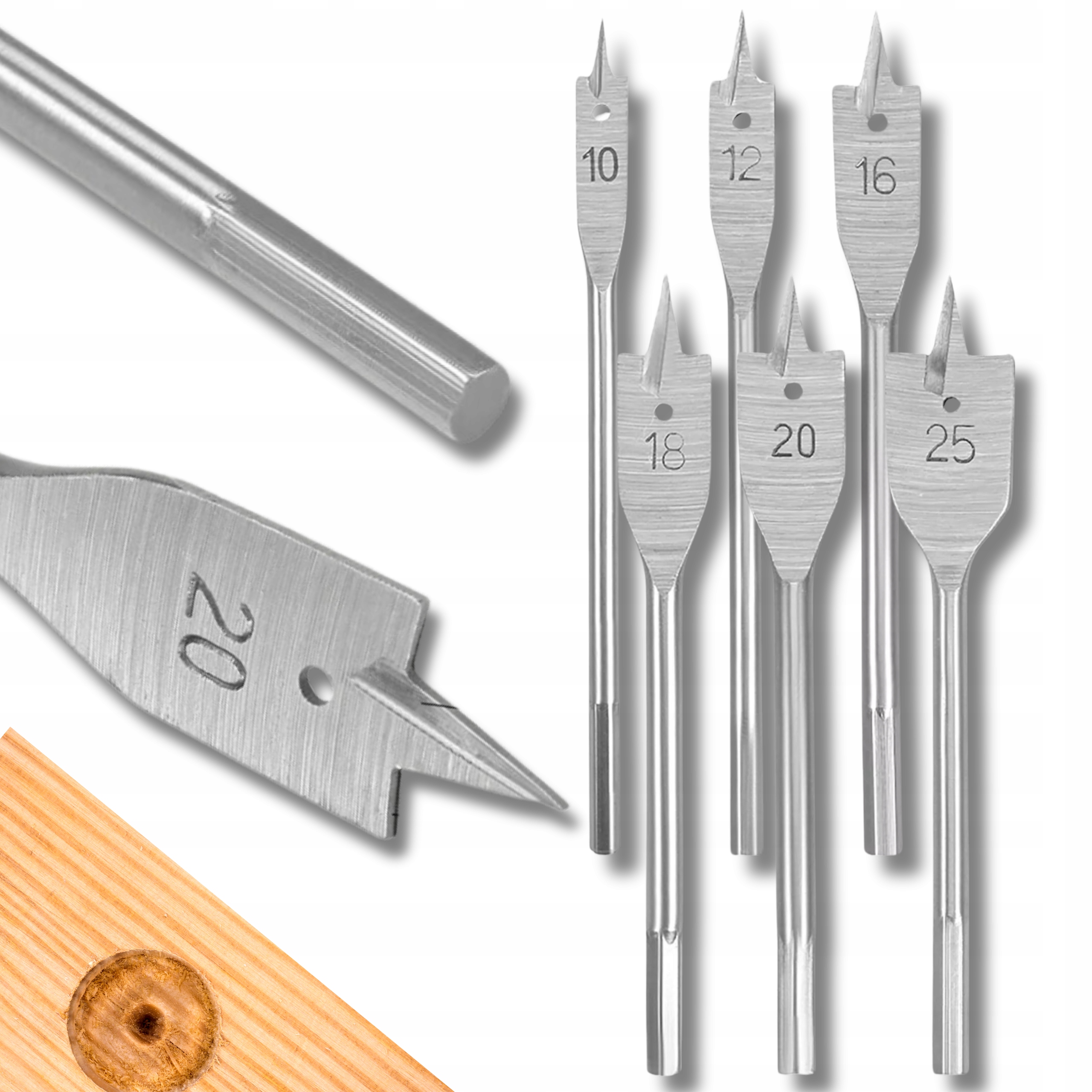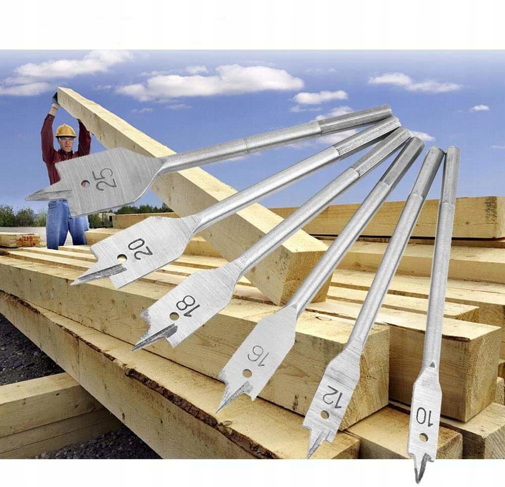 WIERTŁA DO DREWNA PŁASKIE ŁOPATKOWE PIÓRKOWE ZESTAW 10-25 HEX PIÓRKOWE