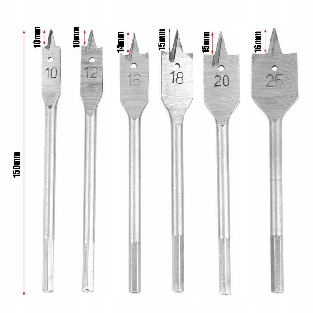 WIERTŁA DO DREWNA PŁASKIE ŁOPATKOWE PIÓRKOWE ZESTAW 10-25 HEX PIÓRKOWE