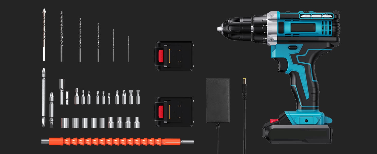 ▶Аккумуляторная дрель на 21 В обеспечивает максимальный крутящий момент 45 Нм и настройку крутящего момента 21 +3 обеспечивает точную работу.