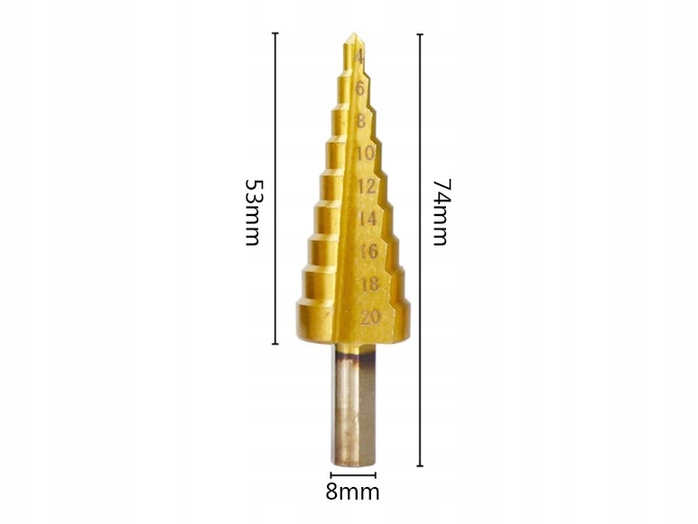 - 1 шт. коническое сверло 4–20 мм HASS. сталь титан