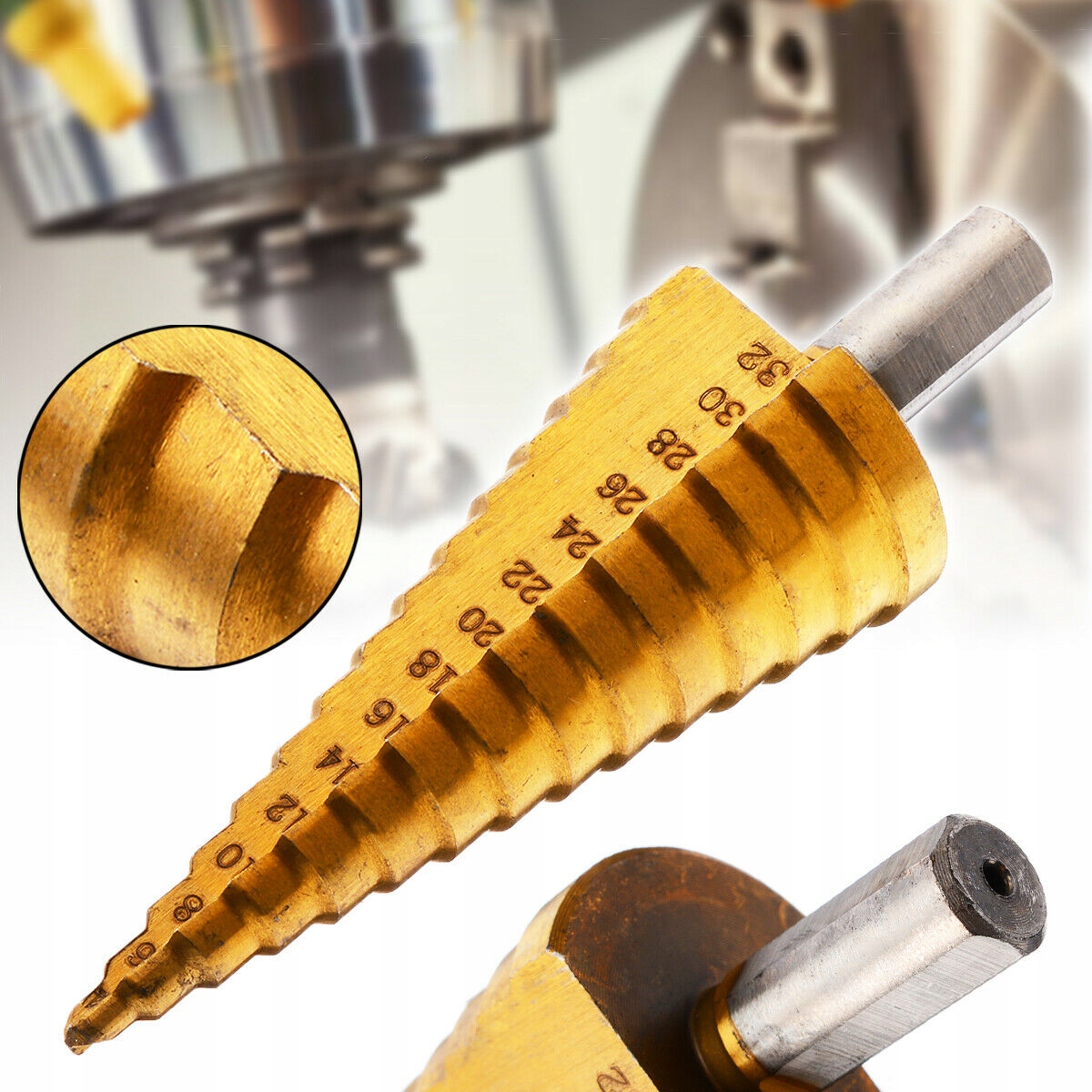 - 1 шт. коническое сверло 4–32 мм, сталь HASS. титан