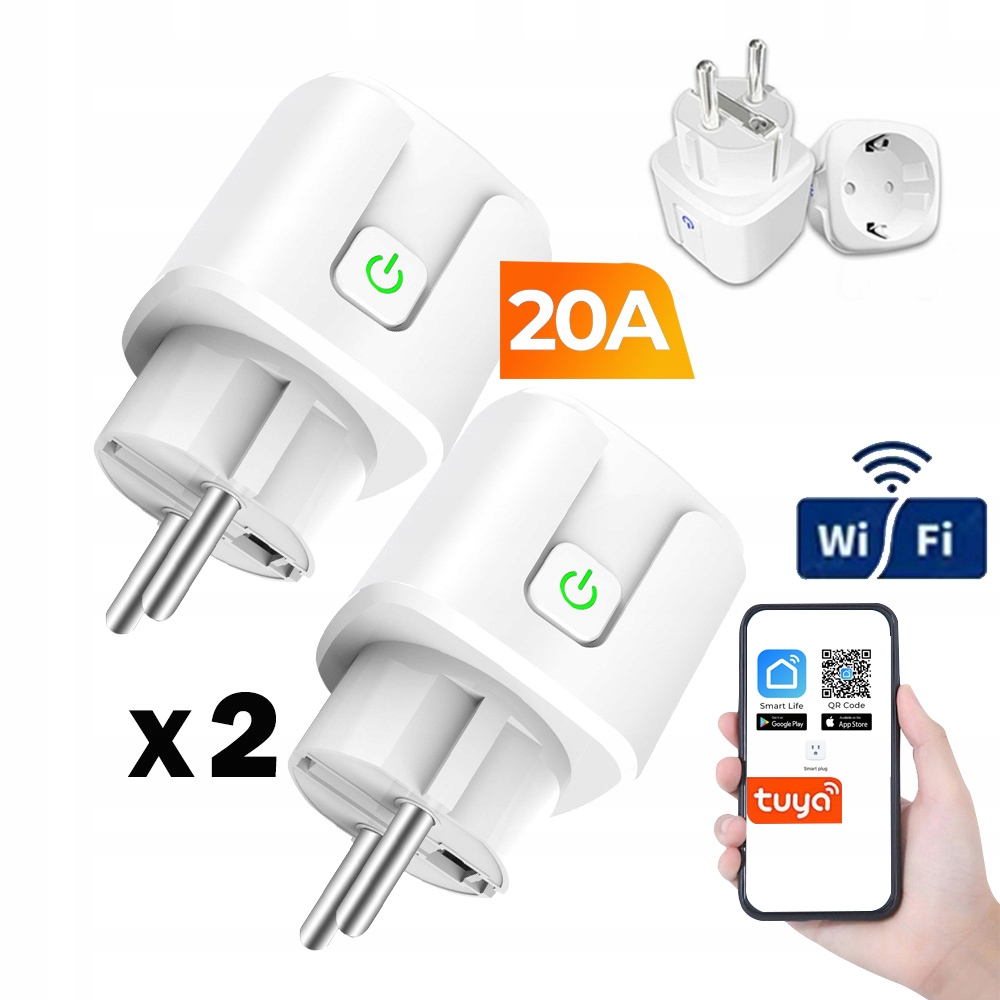 WiFi 2x SMART PLUG ТУЯ ГНЯЗДО 20A ПРОГРАМАТОР ТАЙМЕР