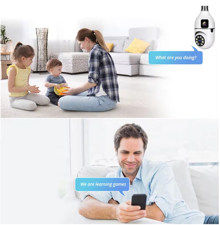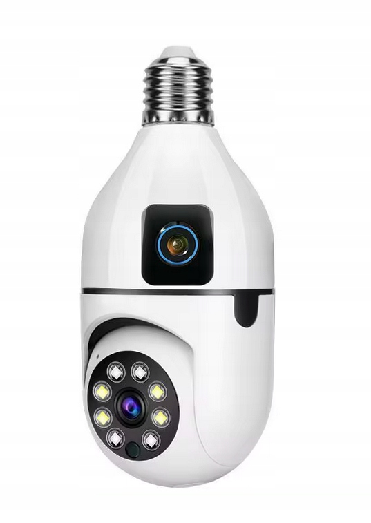 с двойной экранной лампой E27 Камера представляет собой современное решение для обеспечения безопасности вашего дома. Благодаря разрешению 1080P Full HD камера делает кристально четкие изображения, поэтому вы можете точно контролировать свое пространство. Конфигурация с двумя объективами обеспечивает угол обзора 180 градусов, что позволяет охватить большую площадь без необходимости использования нескольких камер. Приложение V380 Pro, совместимое с устройствами iOS и Android, позволяет удаленно получать доступ к камере и управлять ею, что делает его идеальным выбором для любителей умного дома.