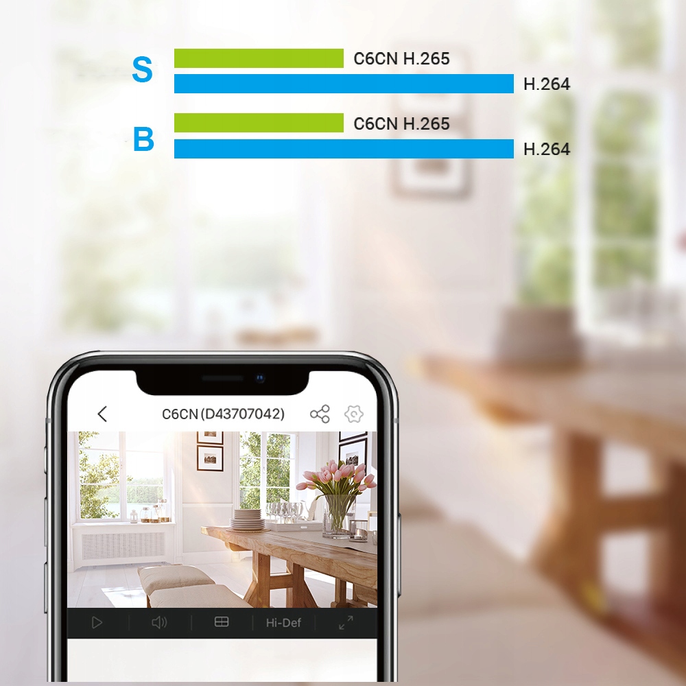 В камере используется передовая технология сжатия видео H.265, обеспечивающая лучшее качество изображения при вдвое меньшей пропускной способности и В два раза больше необходимого объема данных по сравнению с предыдущим стандартом сжатия видео H.264.