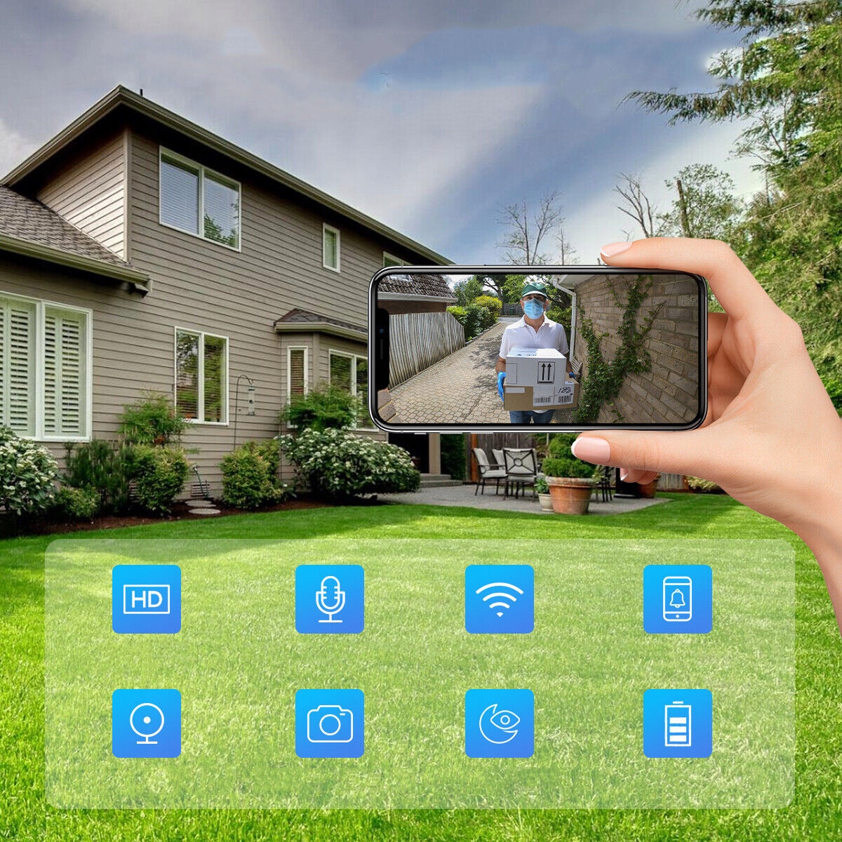 ✅ ✅【Кнопка дверного звонка】: Камера дверного звонка оснащена функцией пробуждения, которая активируется нажатием кнопки дверного звонка. Эта функция гарантирует, что вы никогда не пропустите посетителя, обеспечивая надежный и удобный способ наблюдения за вашим домом.