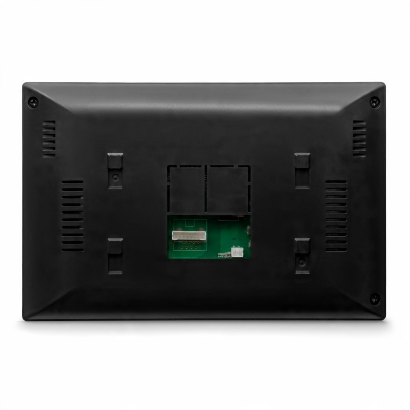 Он оснащен большим 7-дюймовым сенсорным ЖК-экраном с разрешением 1024 x 600 пикселей. Вы можете не только видеть людей, посещающих вас, но также просматривать изображения с подключенных IP-камер. , изменить настройки устройства или просмотреть историю фотографий и записей, сохраненных на карте памяти