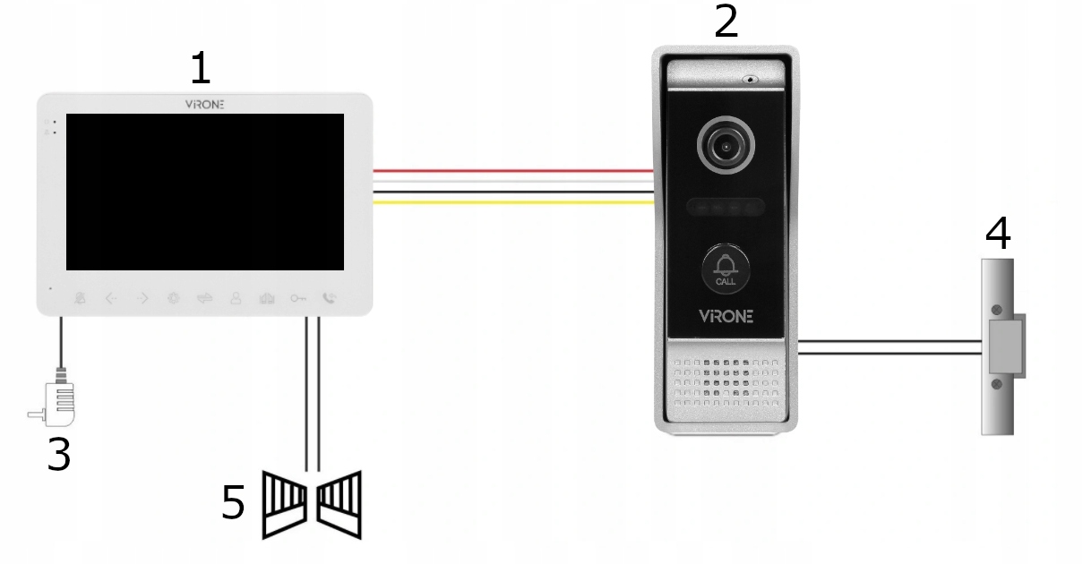 - Прямое электромагнитное управление замкомиспользуется для открытия двери после звонка снаружи или после активации функции предварительного просмотра на мониторе