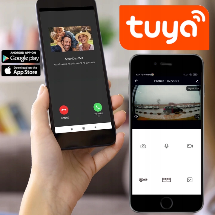 - Помимо традиционного управления с монитора, видеодомофоном можно управлять через бесплатную Приложение Tuya Smart, доступное для iOS и Android. Приложение на ПОЛЬСКОМ языке!