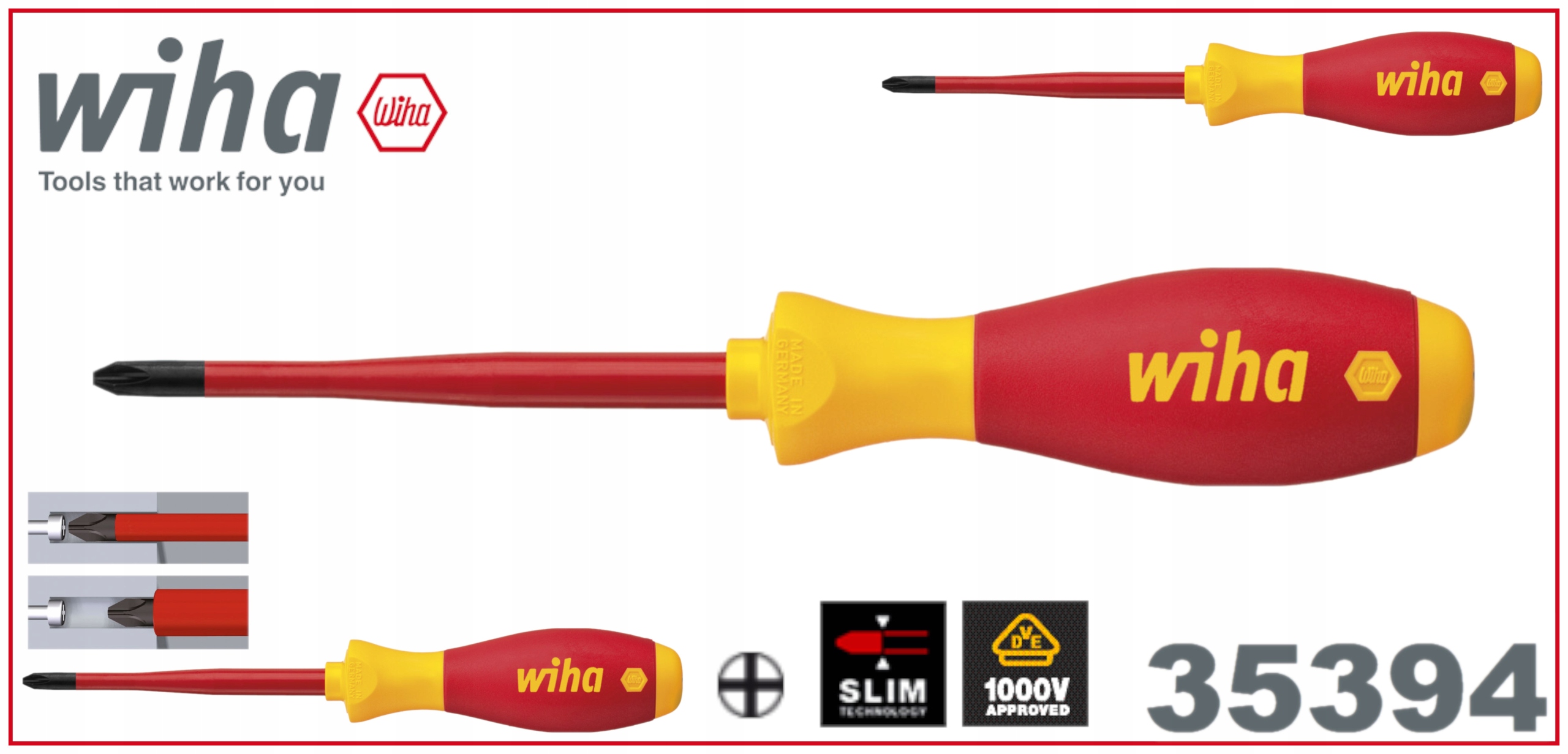 ОТВЕРТКА WIHA SOFTFINISH ИЗОЛИРОВАННАЯ SLIMFIX PHILLIPS PH2 X 100 мм 35394