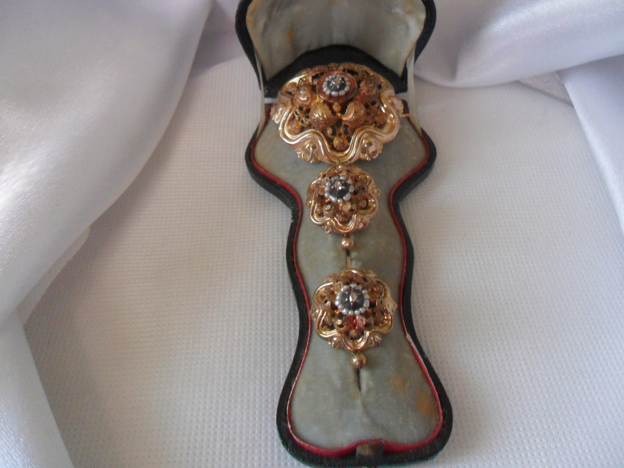 Wiktorianski - Demi Parure - Diamenty Perly -Oryginalne Etui.