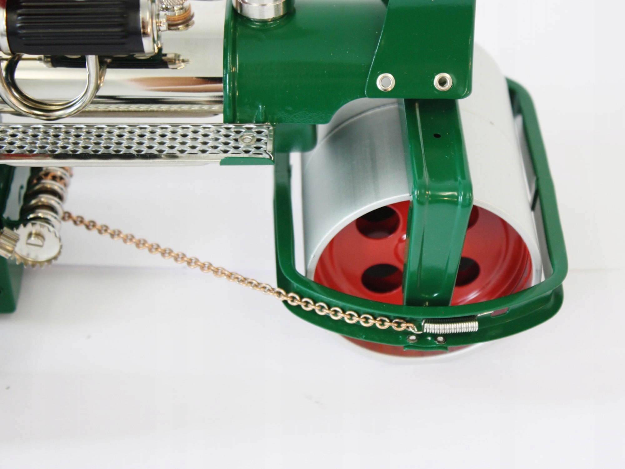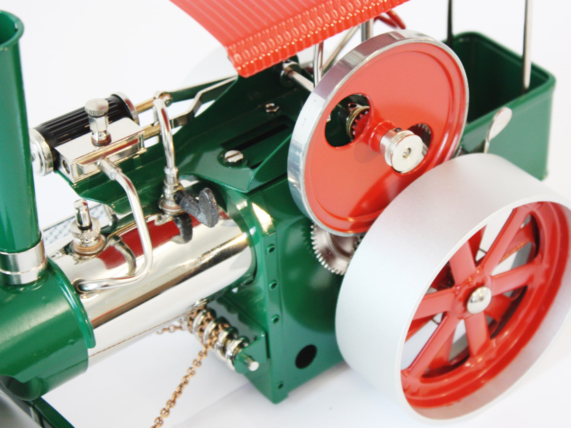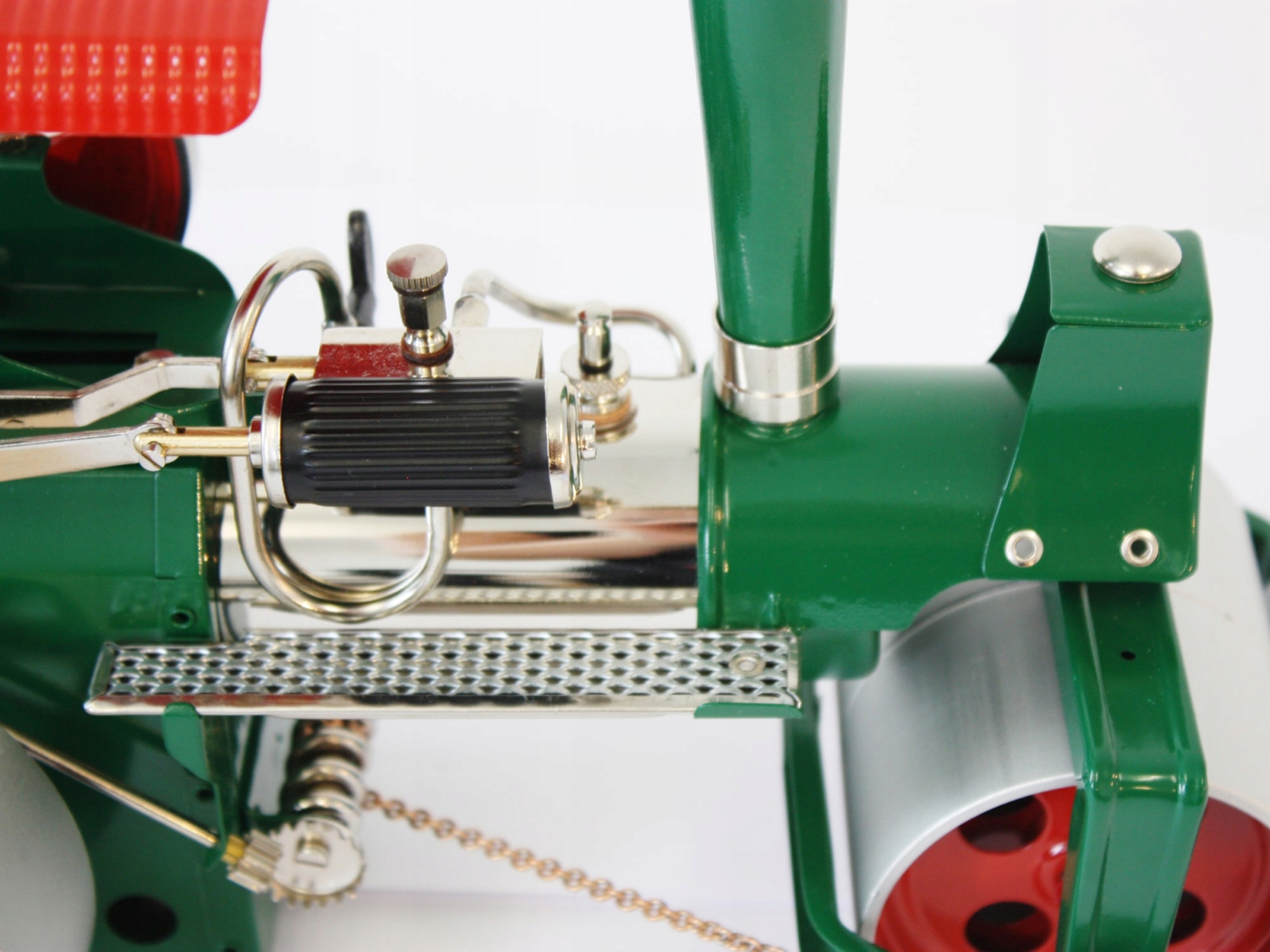 Модель Wilesco "Old Smoky" имеет гораздо меньшую массу, но это единственная вещь, которая отличает ее от старых паровых пешеходов. Drive "Old Smoky" - это настоящий паровой двигатель . Пар для его мощности производится в цилиндрическом 230 см3 котлом нагревается твердым топливом (туристическое топливо). Торсионная ось , контролируемая цепью, позволяет направлять ролик, где мы хотим. Коробка передач позволяет двигаться вперед и назад , а нейтральный прогон позволяет использовать вальс в качестве приводной машины, например, Для княка, генератора или другого залога Вильеско.