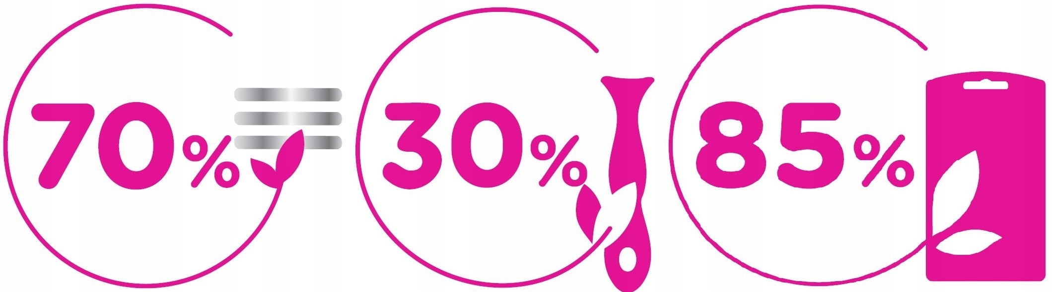 - Упаковка на 85 % изготовлена из переработанных материалов