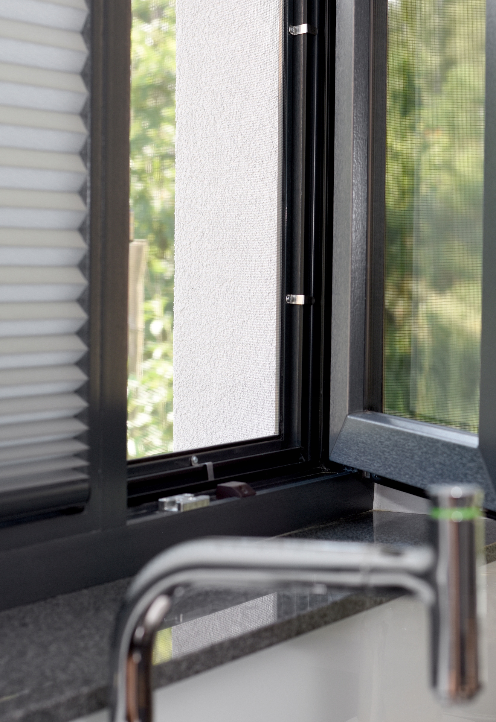 - обтекаемая форма (без пазов) «сливается» с оконной рамой, что делает москитную сетку практически незаметной