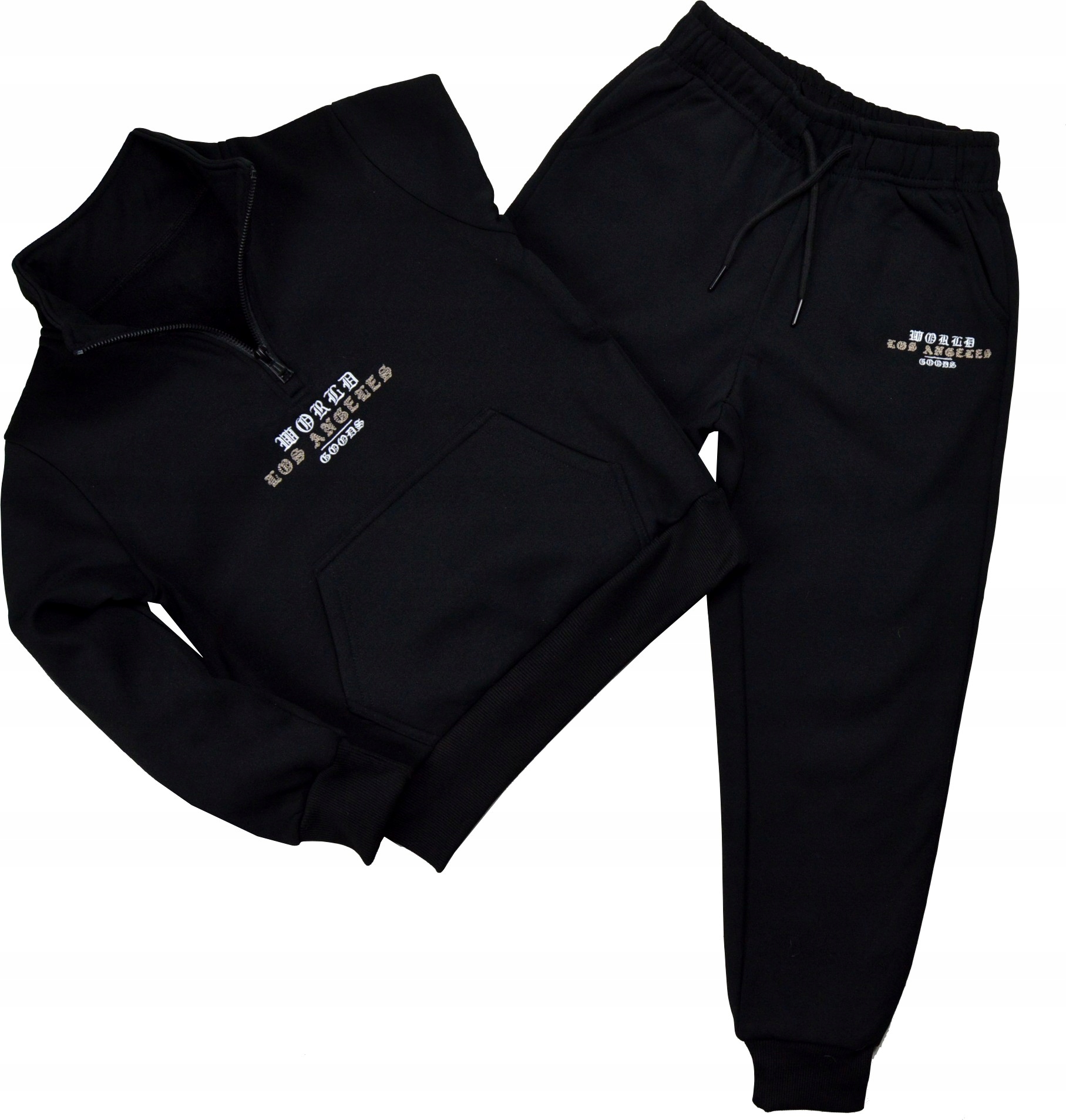 Выполнен из качественной утепленной ткани, двухкомпонентный, однородного фасона, комплект состоит из: толстовки с воротником-стойкой и брюк с карманами.