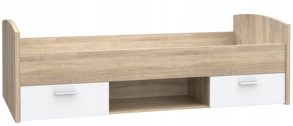 Молодежная кровать из коллекции WINNIE – интересный дизайн, идеально подходящий для комнаты творческого подростка. Комод выполнен в оттенке Дуб Сонома, а фасады двух ящиков выполнены в белом цвете Uni. В кровати также есть функциональная ниша, которая может служить отделением для хранения вещей.