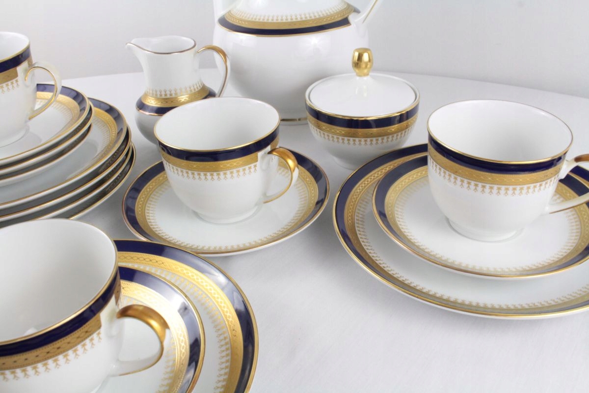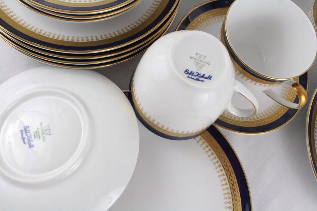 Белый фарфор, украшенный кобальтом и золотом