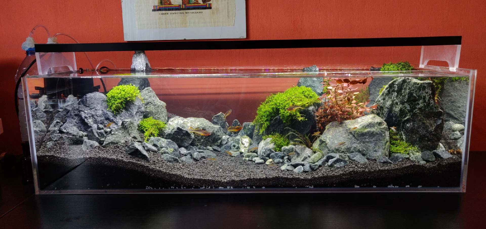 После размещения субстрата в резервуар и затопления вода отфильтровывается. Требуется слой подложки толщиной 4-5 см в аквариуме с данной длиной ДНК: