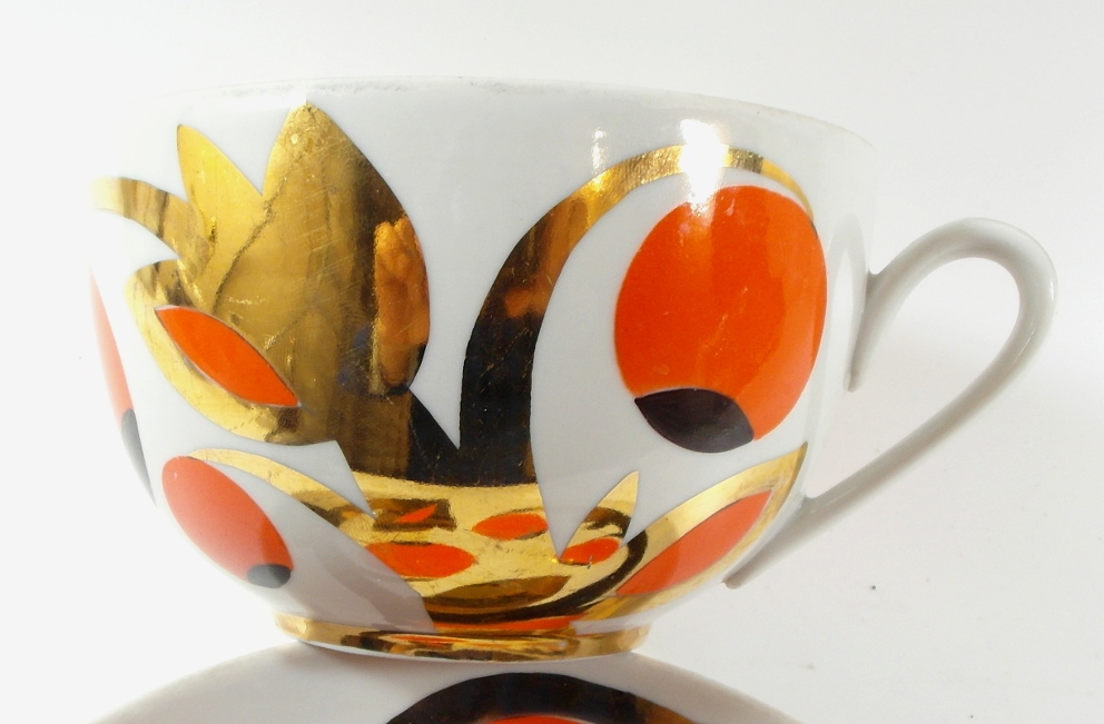 Предмет аукциона – красивая, старинная чашка из белого фарфора с обильным позолотой.