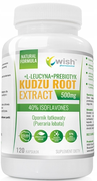 - Мега доза (2 капсулы) - Корень кудзу WISH Pharmaceutical® — пищевая добавка, обеспечивающая до 1000 мг чистого экстракта корня кудзу, стандартизированного до 40% изофлавонов.