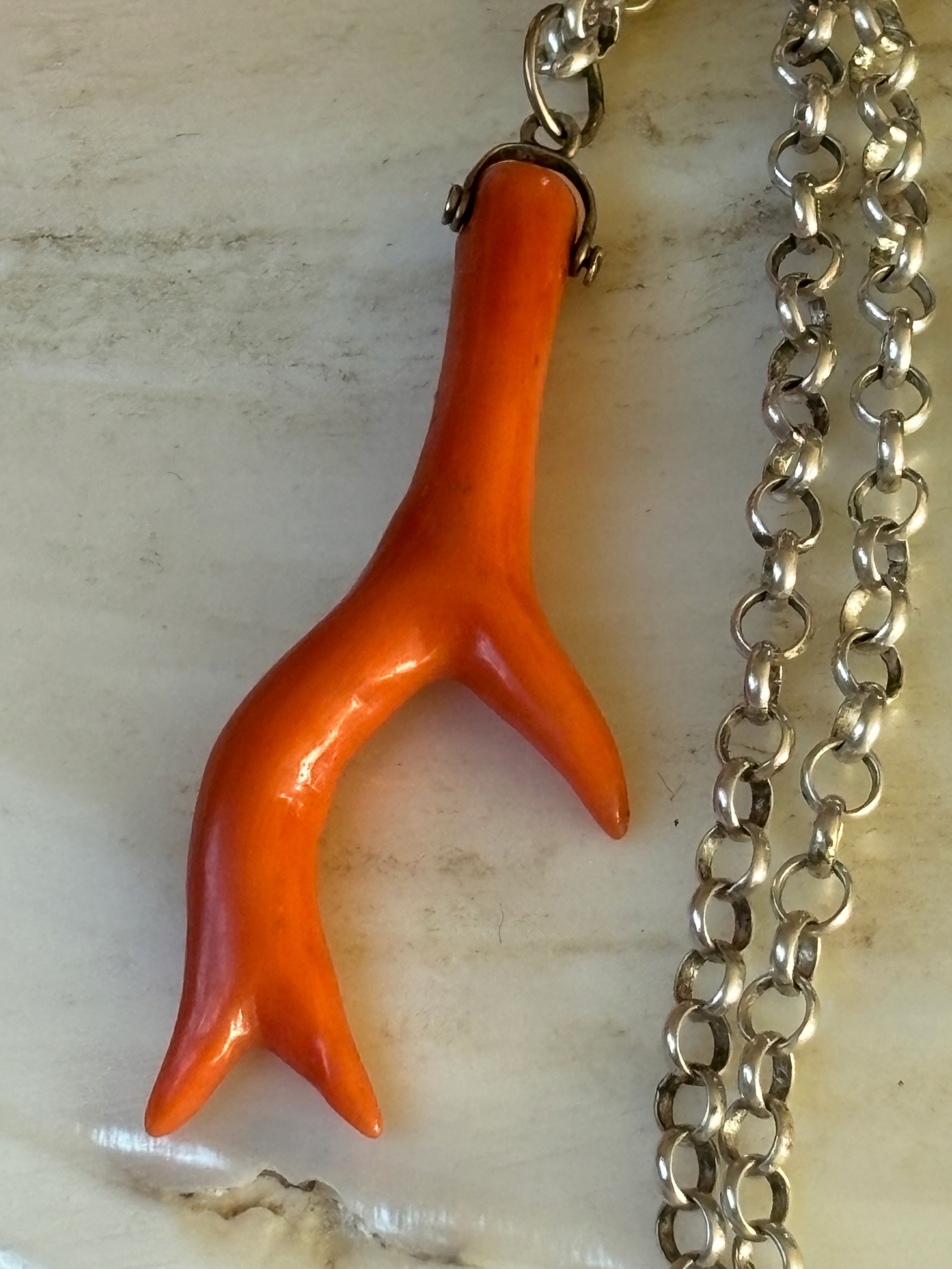 Wisior zawieszka stary srebrny koral naturalny