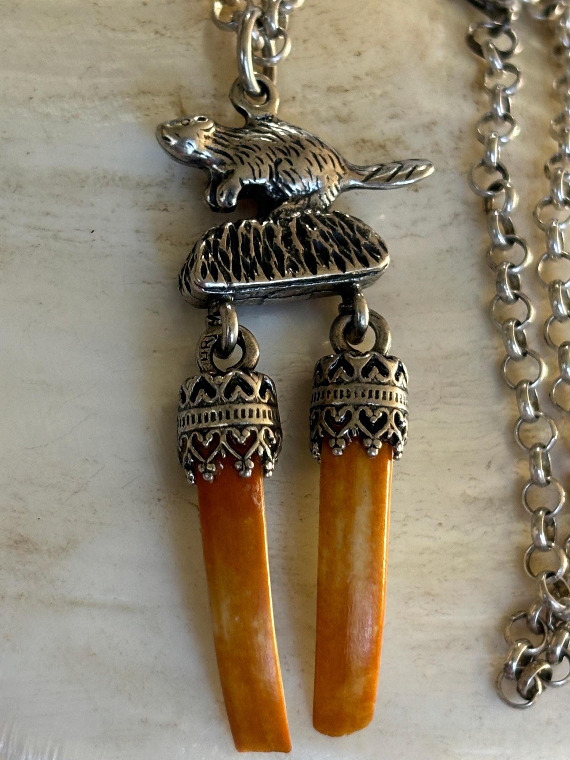 Wisior zawieszka stary srebrny myśliwski zęby kły