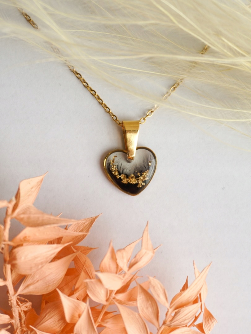Wisiorek serce czarno-złote, prezent na Walentynki