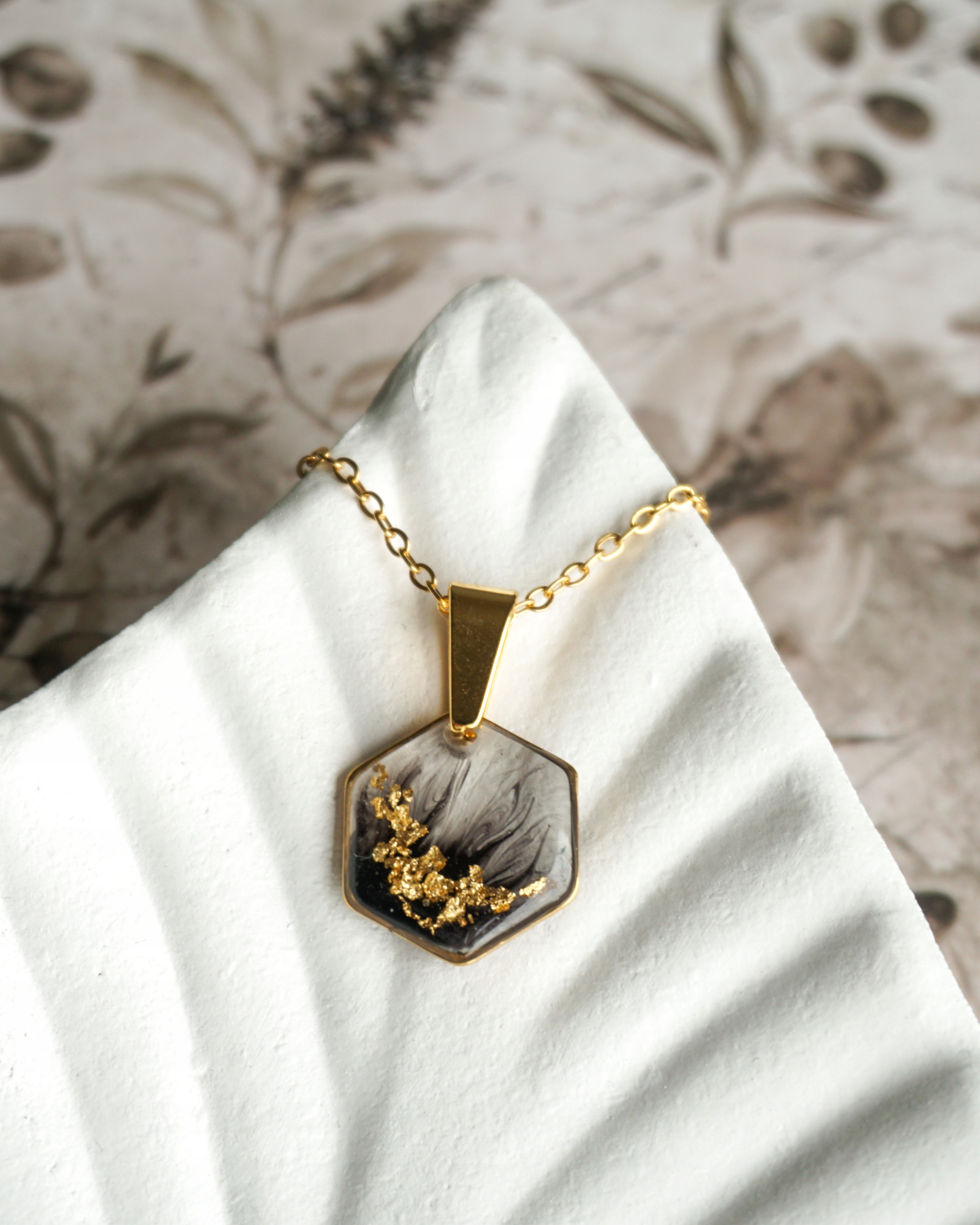Wisiorek sześciokąt, złota stal chirurgiczna, prezent na Dzień Kobiet