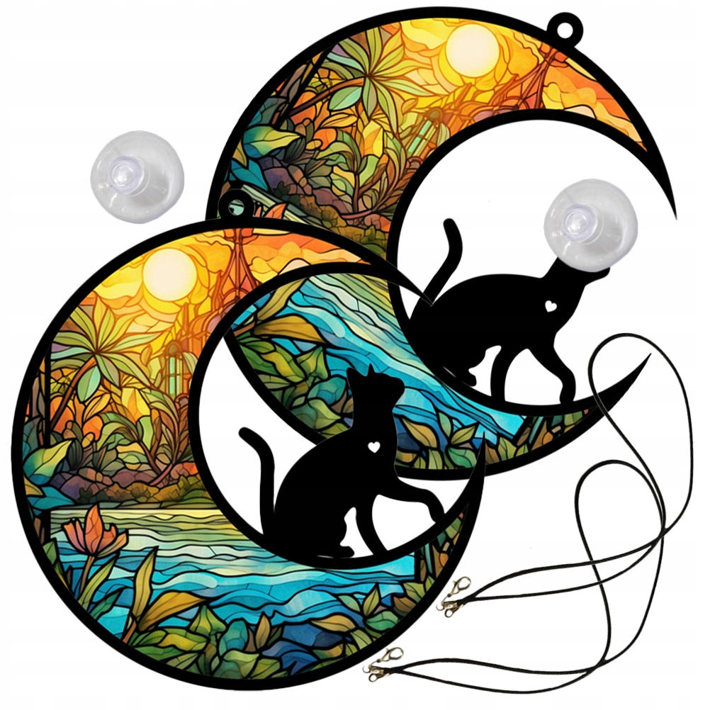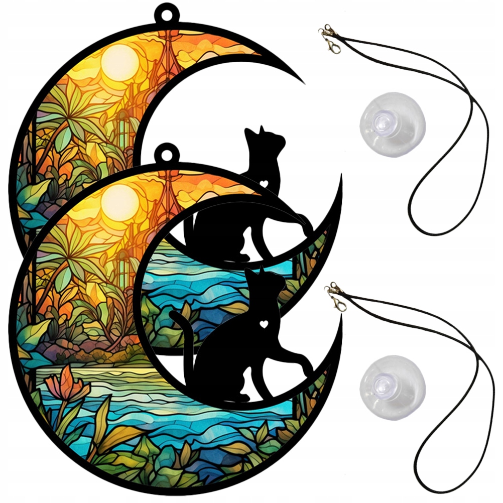 2шт АКРИЛОВАЯ НАСТЕННАЯ СКУЛЬПТУРА ЛУНА И КОШКА ЦВЕТНАЯ
