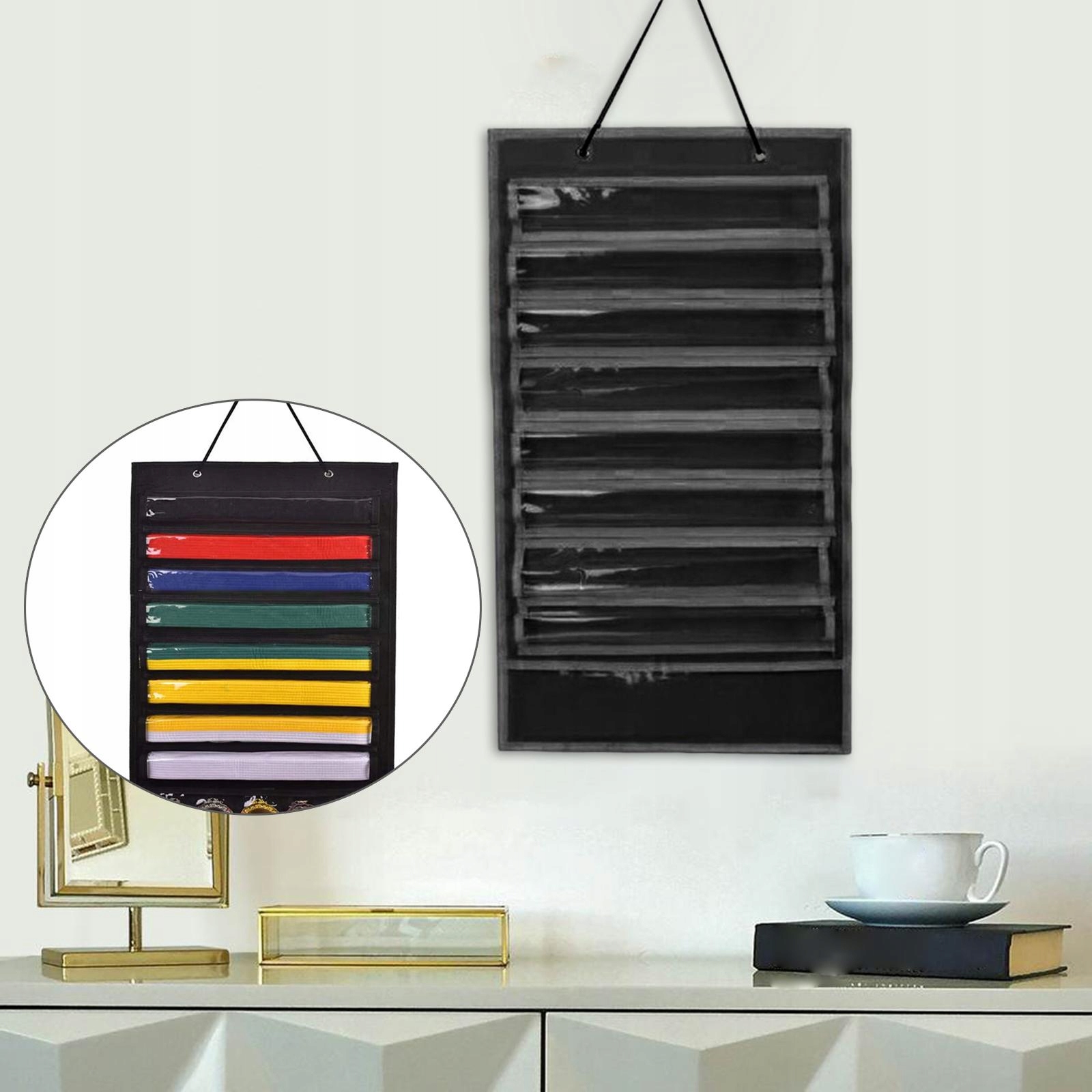 Wiszący stojak na pasek do sztuk walki na 8 pasów, mieszczący 5 medali, czarny