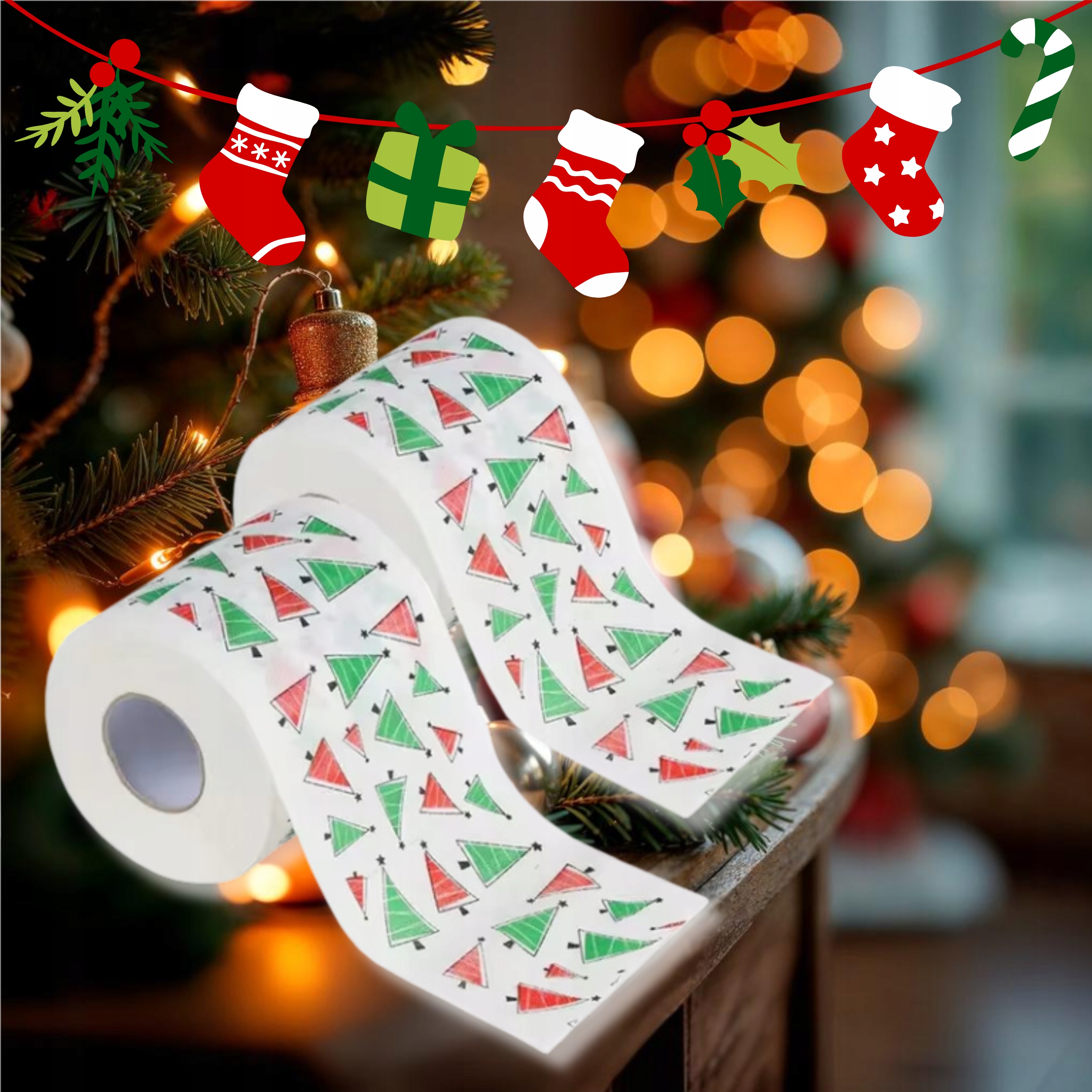 ŚWIĄTECZNY PAPIER TOALETOWY KOLOROWE CHOINKI NA PREZENT OZDOBA ŁAZIENKI