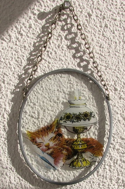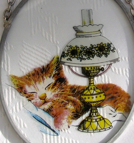 Witraż okienny * szkło * ręcznie malowany * KOT, KOTEK