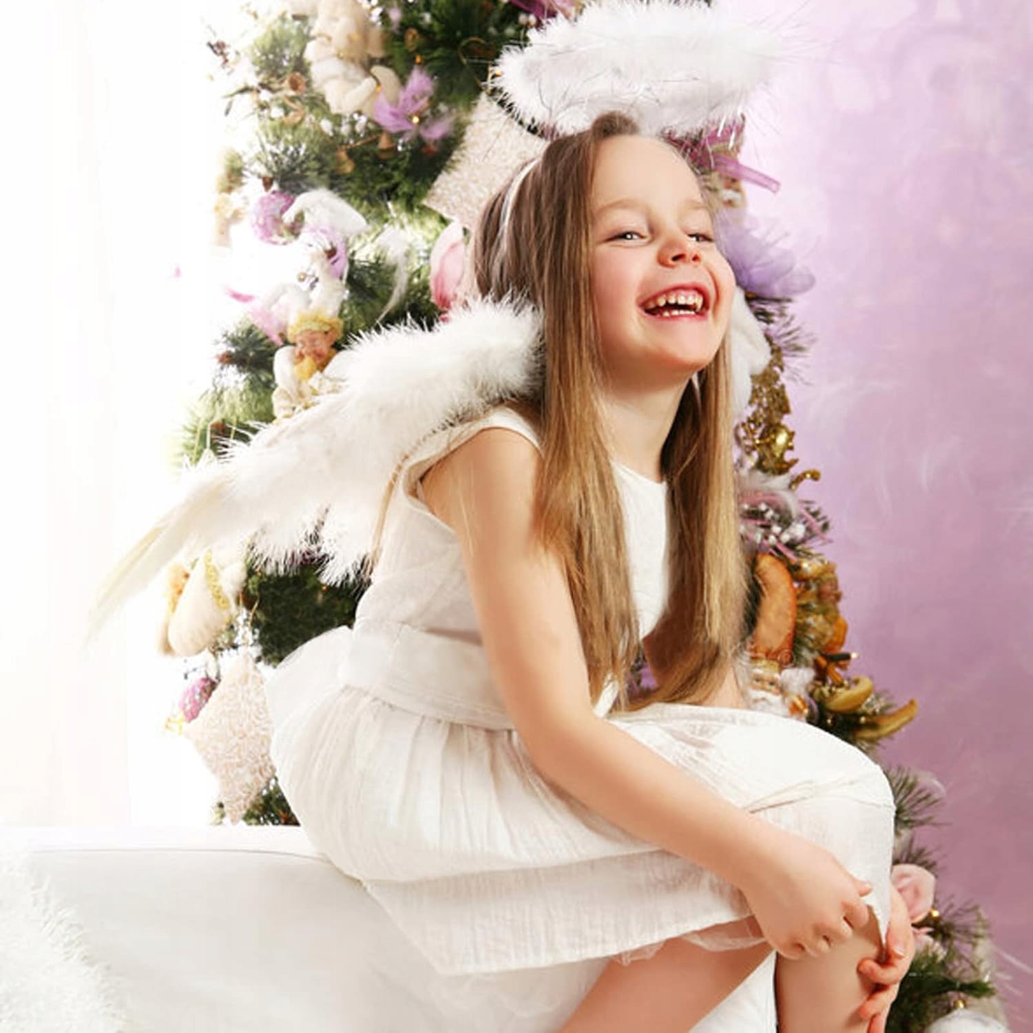 с повязкой на голову и гало -палочкой, белыми крыльями Ангела, партийным костюмом. h1>
