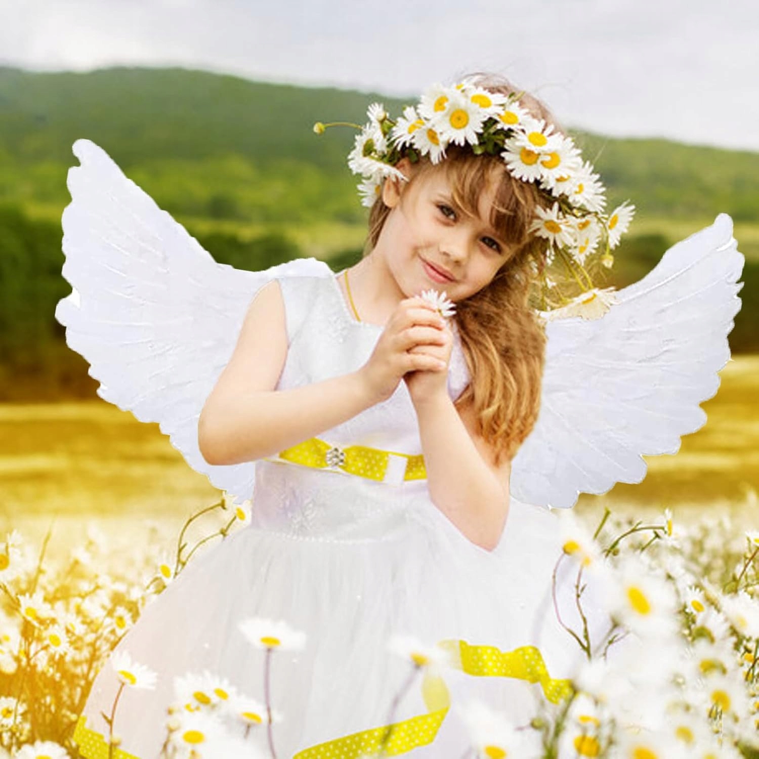 содержит белые крылья с перьями с гибкими браслетами, чтобы дополнить костюмы ангелов для Хэллоуина, Рождества, Ангела, годовщины свадьбы или маскировки.