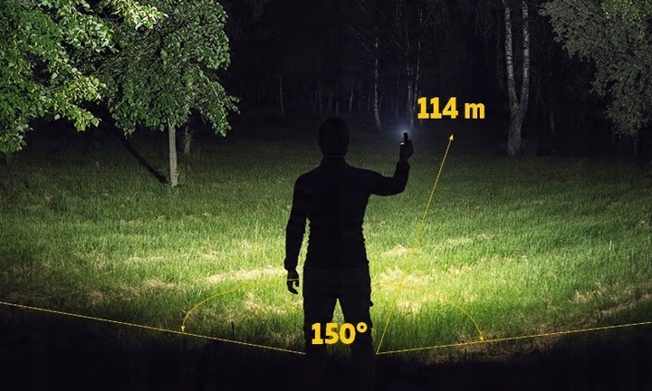 - Большой дальность источника света - 114 м