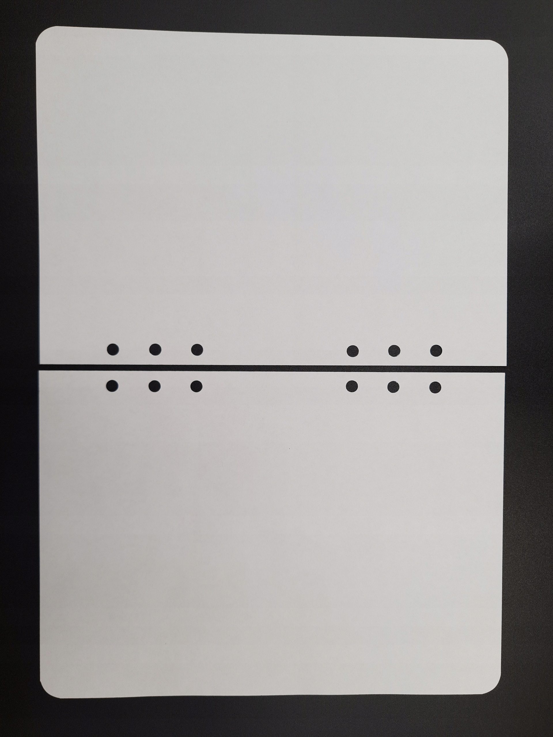 За счет использования папки с шестью кольцами (вместо стандартных двух) удалось повысить стойкость карточек от случайного вырывания и улучшить их удержание. Закругленные углы не дают им сгибаться и облегчают перемещение карт.