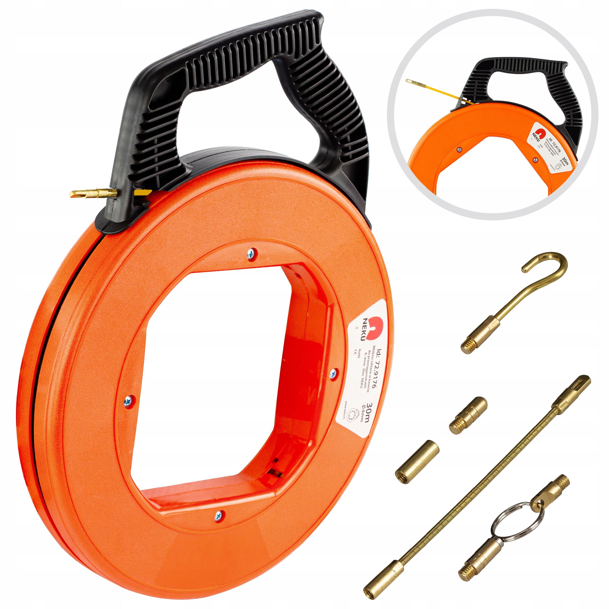 WŁÓKNO SZKLANE KASETA PILOT DO PRZECIĄGANIA KABLI STALKA WCIĄGARKA 30m NEKU