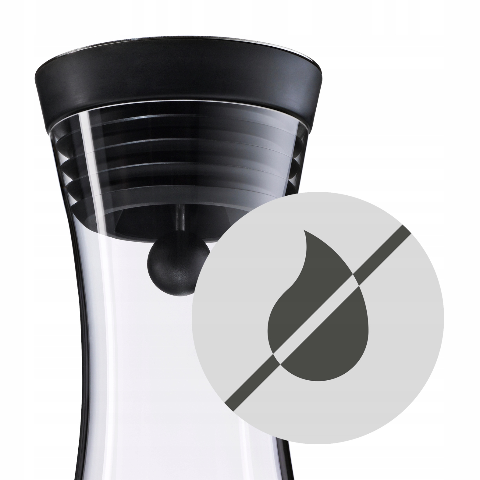 WMF Water and Prinks Basic 1.5L имеет автоматическое открытие и закрытие при наклоне, что облегчает заливку. Кроме того, ситечко останавливает лед и кусочки фруктов в середине карафа.