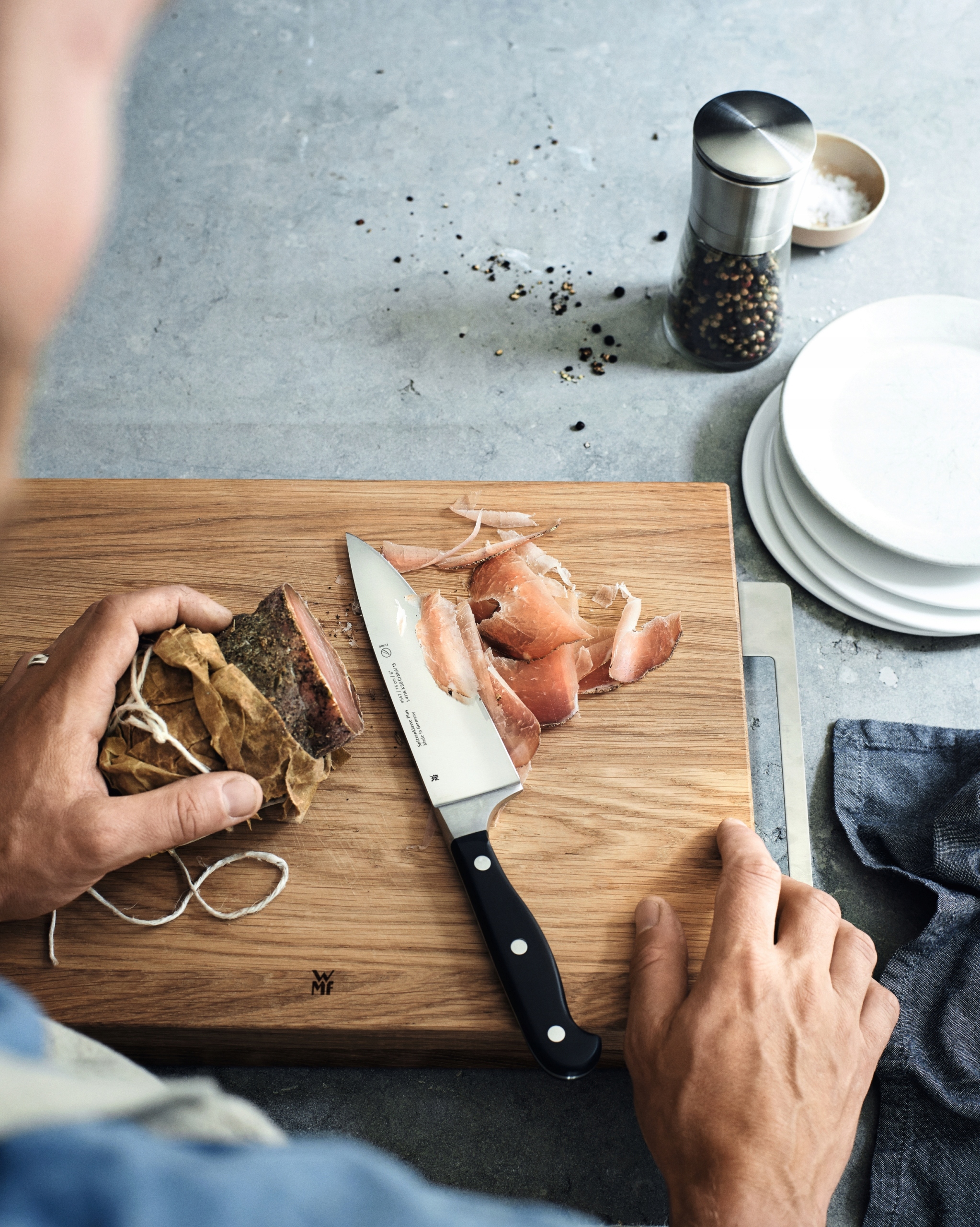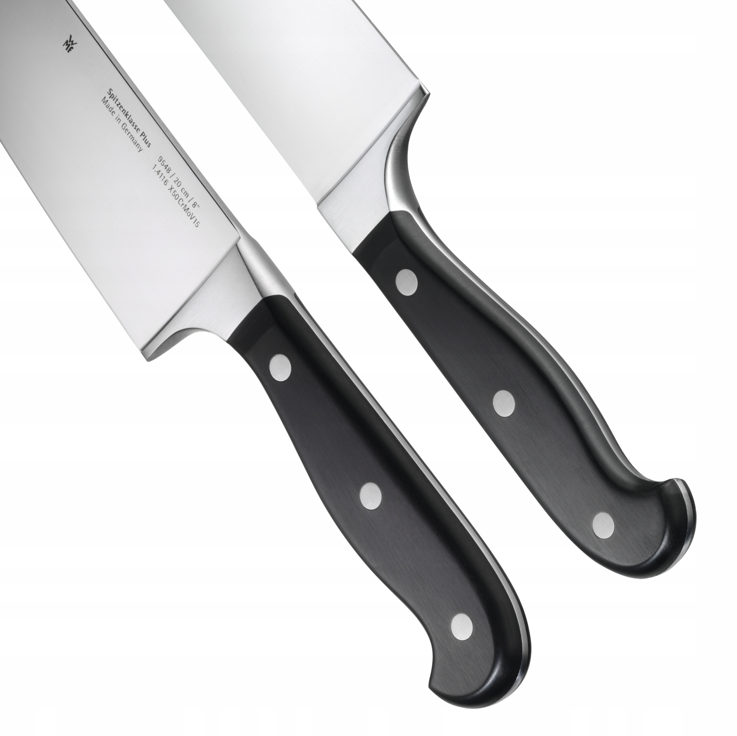 Spitzenklasse Plus — серия ножей из кованой стали от бренда WMF. Лезвия исключительно прочные, устойчивые к коррозии и очень острые. Между лезвием и ручкой соблюден правильный баланс, а сами ручки исключительно хорошо лежат в руке и облегчают работу на кухне. Ножи серии Spitzenklasse Plus выглядят традиционно и элегантно благодаря заклепкам из нержавеющей стали Cromargan.