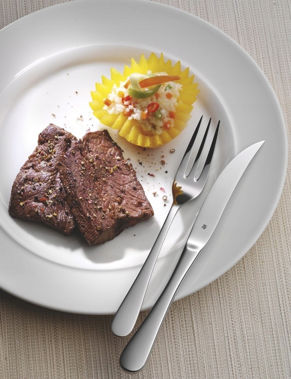 Прочностью, высоким блеском и устойчивостью к пищевым кислотам мы обязаны нержавеющей стали Cromargan® 18/10, запатентованной WMF (18 % хром, 10 % никель, 72 % сталь). Столовые приборы можно мыть в посудомоечной машине.