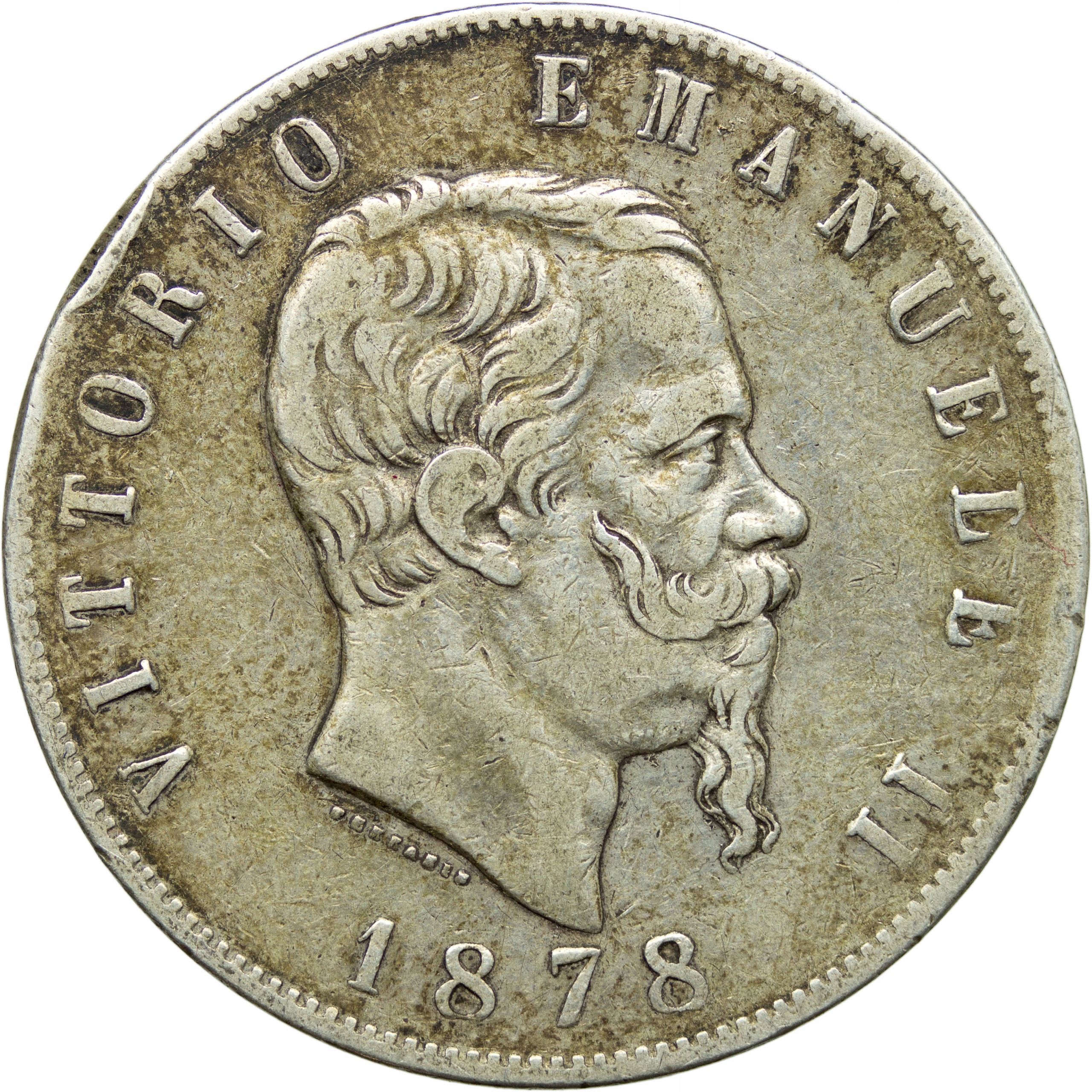 Włochy, 5 lirów 1878 R, Wiktor Emanuel II, st. 3