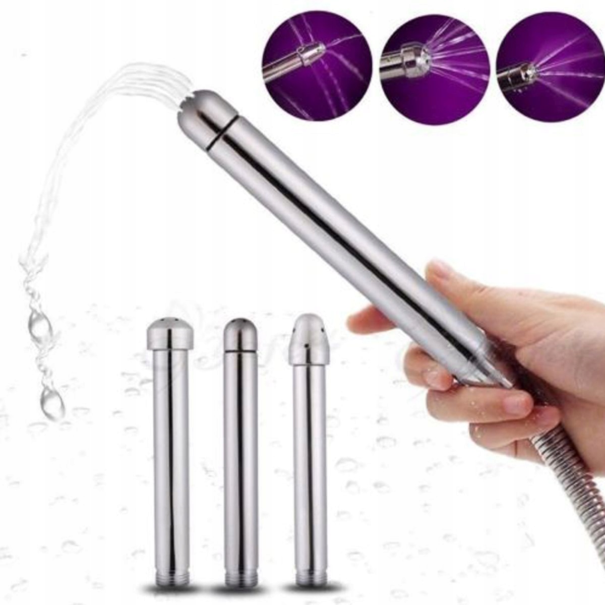 Анальный или вагинальный ирригатор, прикрепленный к душевому шлангу, представляет собой изделие, имеющее множество применений. Его можно использовать для эротического массажа струей воды – приводящего к невероятно интенсивным ощущениям, а также для очистки ануса, подготавливая попу к анальной игре.