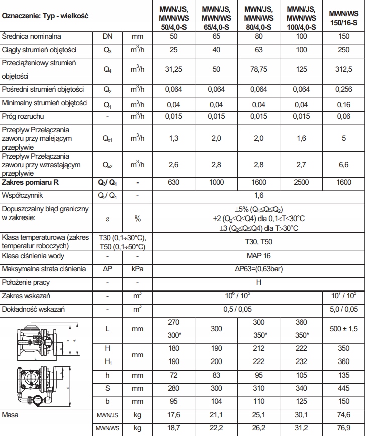 • составные части спаренного водосчетчика: - основной водомер - водомер винтовой с горизонтальной осью ротора со съемной измерительной вставкой, сухой ход, MWN ,тип МВт - счетчик воды боковой - крыльчатой одноструйный счетчик типа JS, - клапан переключения подпружиненный, работа которого не требует использования внешнего источника энергии,