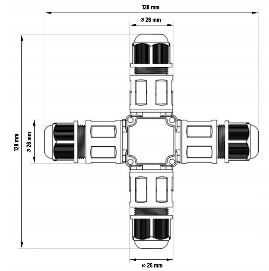 Wodoodporna mufa kablowa czterowlotowa z 3 torowym szybkozłącza IP68