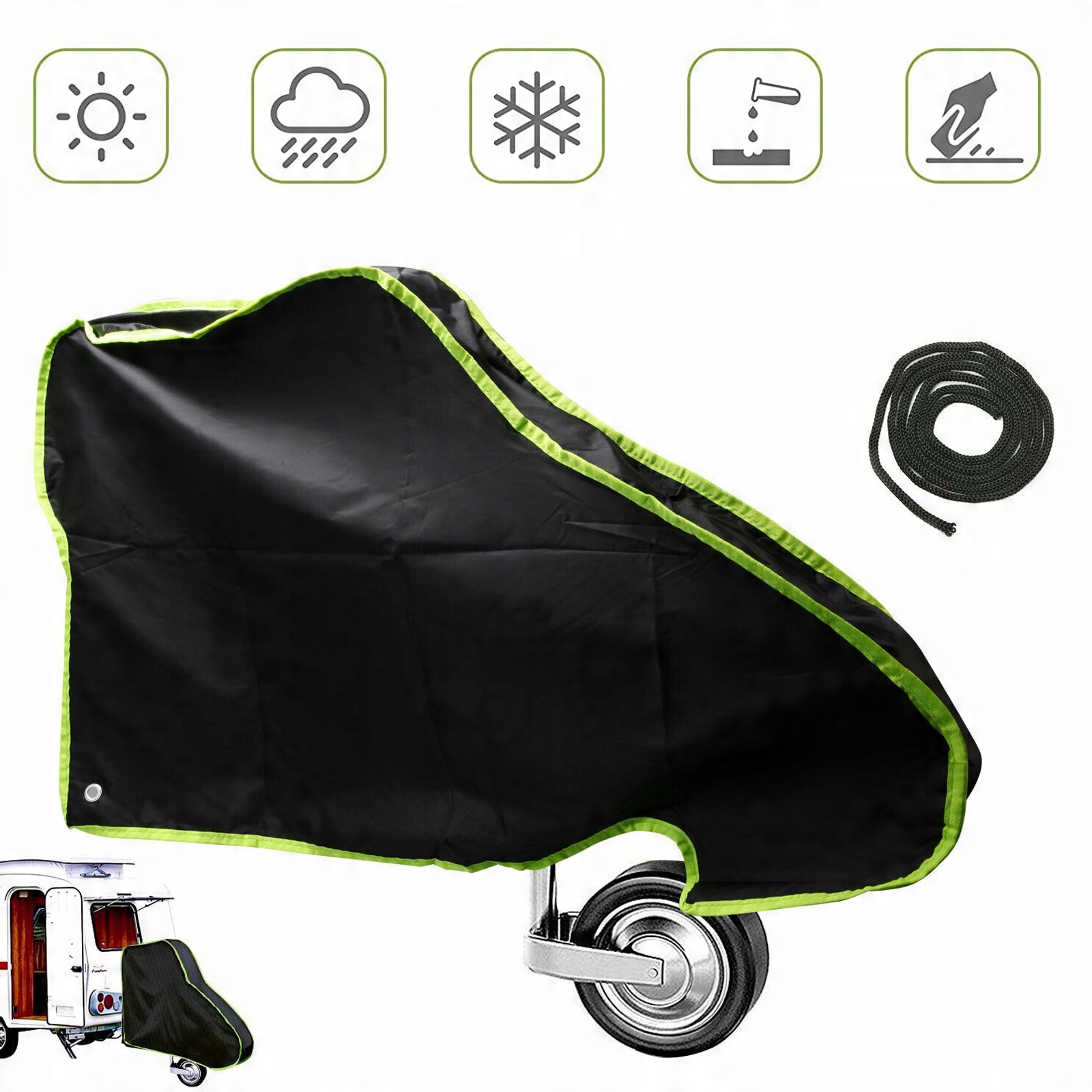WODOODPORNA OSŁONA ZACZEPU DO PRZYCZEP KEMPINGOWYCH Z PASKAMI ODBLASKOWYMI