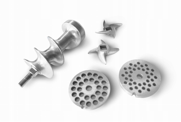 Устройство для измельчения приготовленного, сырого мяса, а также рыбы, картофеля и приготовленных овощей. Легкая разборка эксплуатационных деталей помогает поддерживать устройство в чистоте. У машины также есть 4 не -скользящие ножки. Мясной волк, изготовленный из нержавеющей стали.