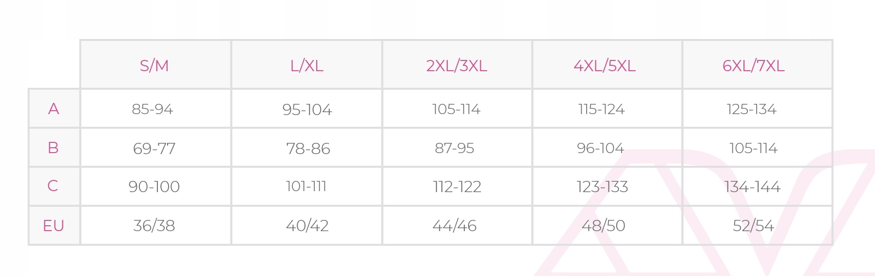 Таблица размера: a: бюст b: под бюстом C: ЕС бедра: размер ЕС